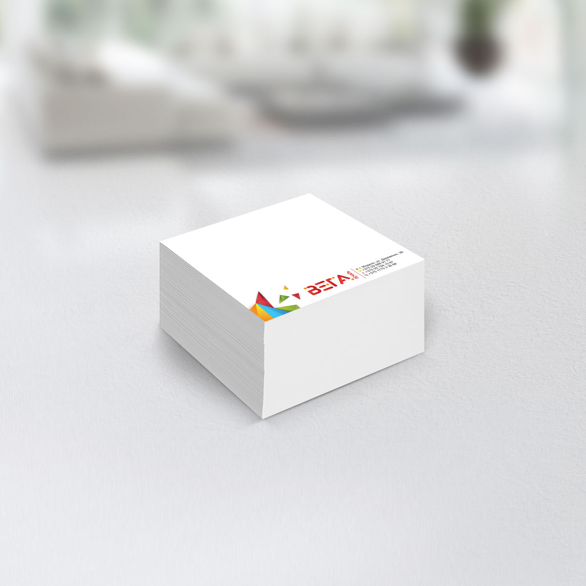 Кубарики - склеенные с торца листы бумаги, образующие бумажный блок, как правило, размером 9х9 см. Кубарики используют для срочных пометок и заметок. На каждом листочке кубарика надпечатывается логотип и контактная информация фирмы. Подставка под кубарики — своеобразная коробочка для вложения в нее нарезанной под нужный формат бумаги для заметок.
