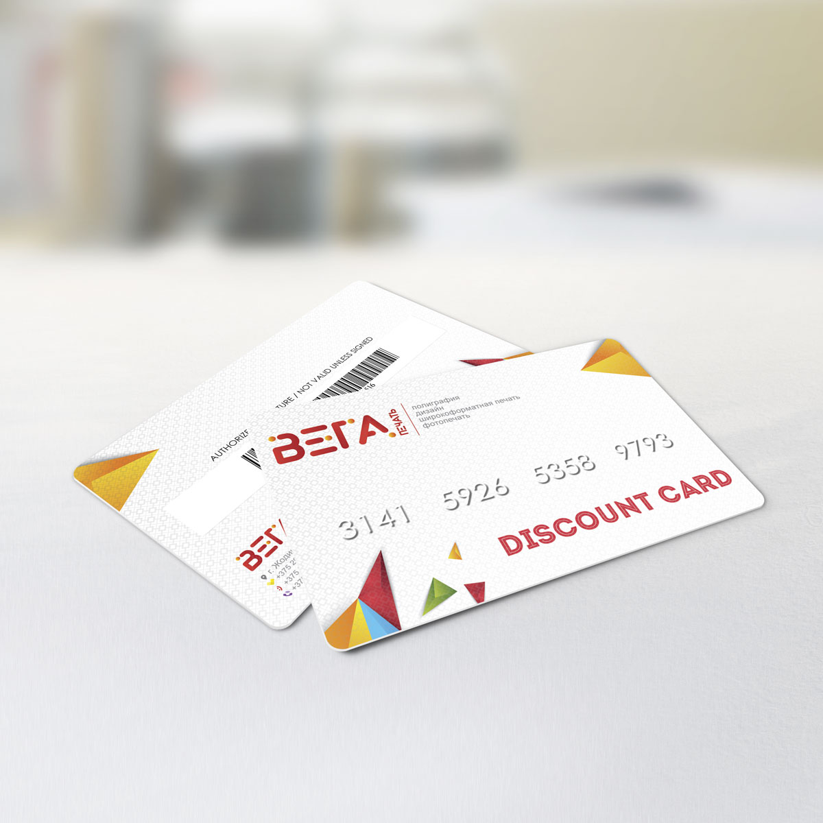 Дисконтные карты – наиболее простой и эффективный способ привлечения новых клиентов, а также инструмент для поддержания лояльности и заинтересованности постоянных клиентов. Простая дисконтная карта даёт клиенту информацию о вашей компании, системе скидок либо дисконтной программе.