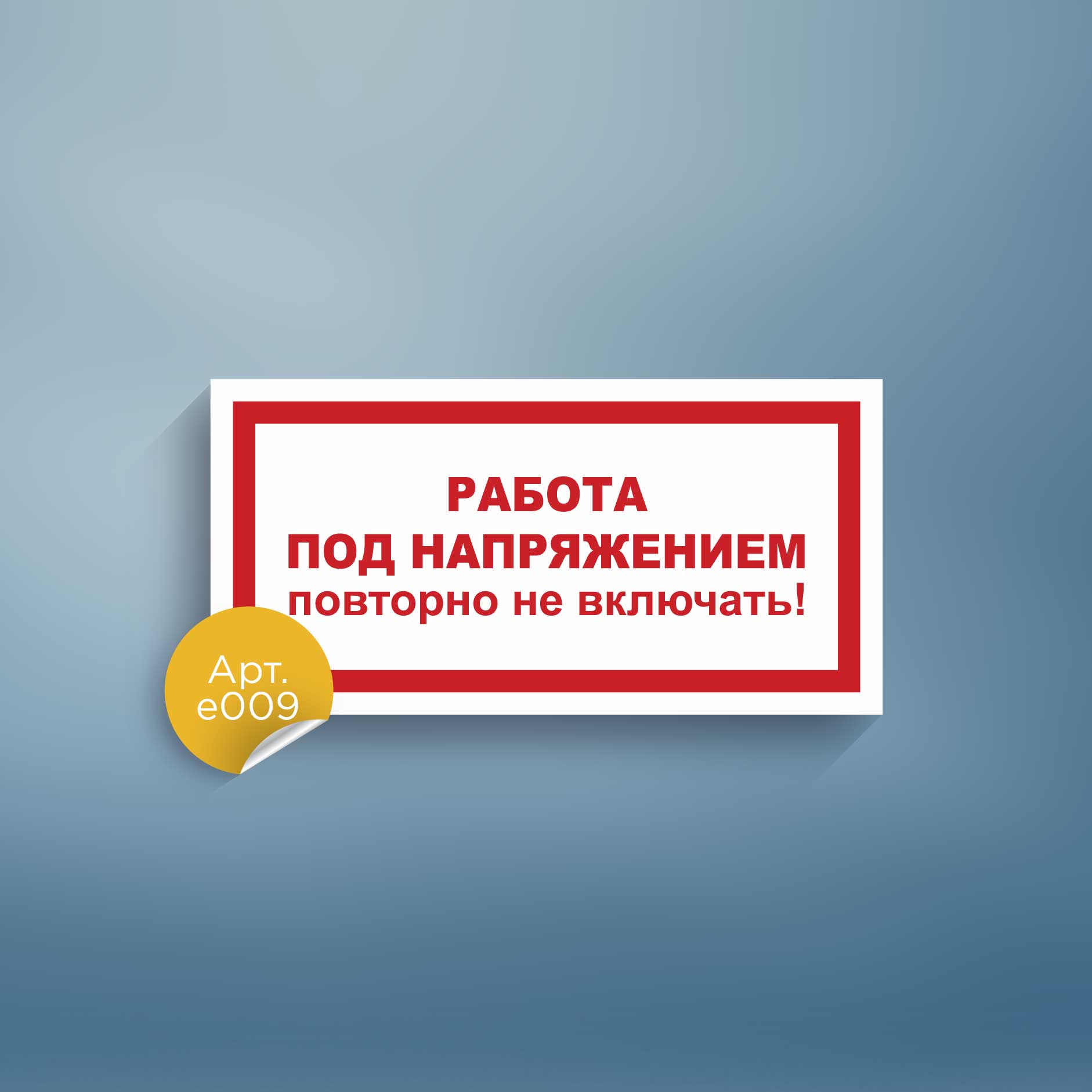 Знак Работа под напряжением. Повторно не включать используется в местах, где имеется высокое напряжение, чтобы известить о том, что повторно включать приборы запрещено. Знак обезопасит людей от возможных опасностей.