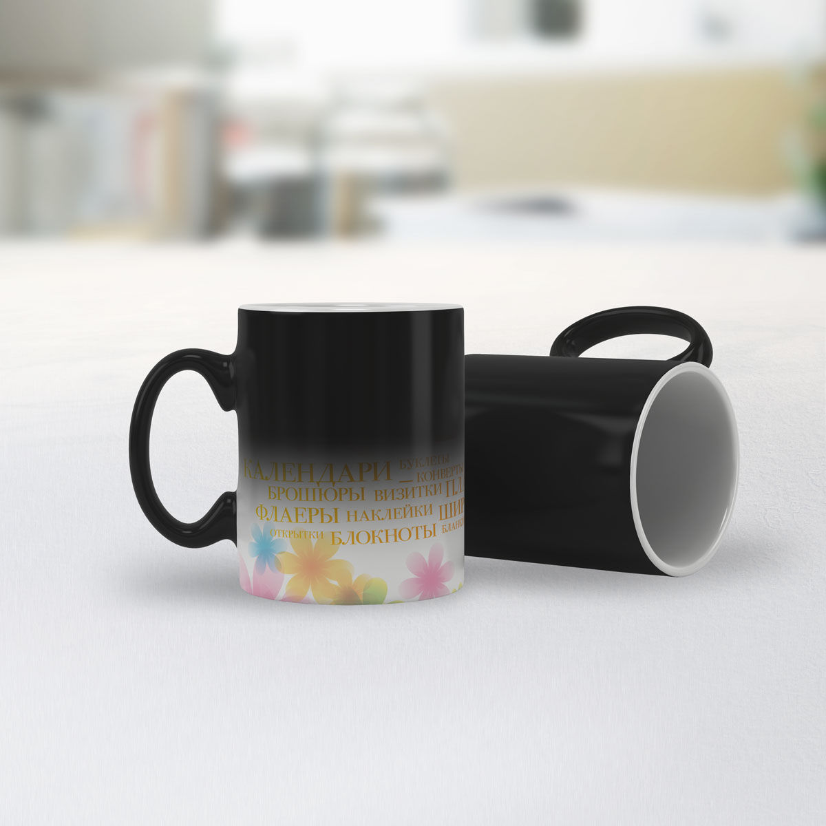 Печать на кружках-хамелеонах – один из самых популярных видов сувенирной продукции. В обычном состоянии керамика имеет однотонную темную поверхность, а при нагреве на ней проступает изображение. Кружка-хамелеон будет необычным и интересным подарком для родителей, друзей, близких или коллег.