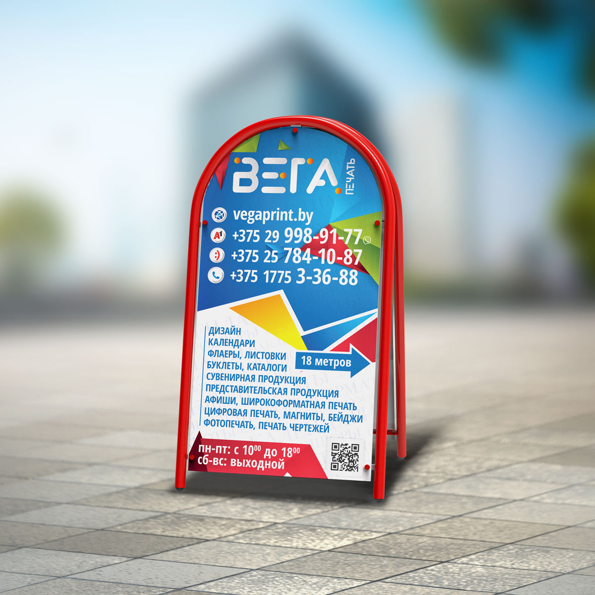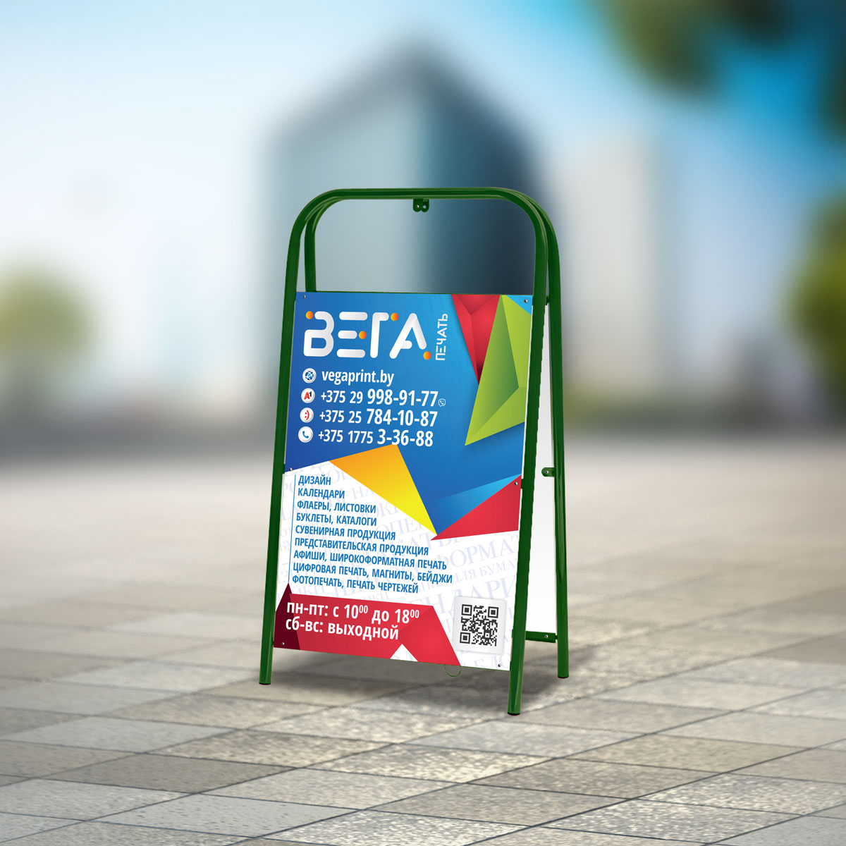 Выносной рекламный штендер - мобильная рекламная раскладная конструкция, на панелях которого посредством печати размещается рекламное изображение или текстовая информация.