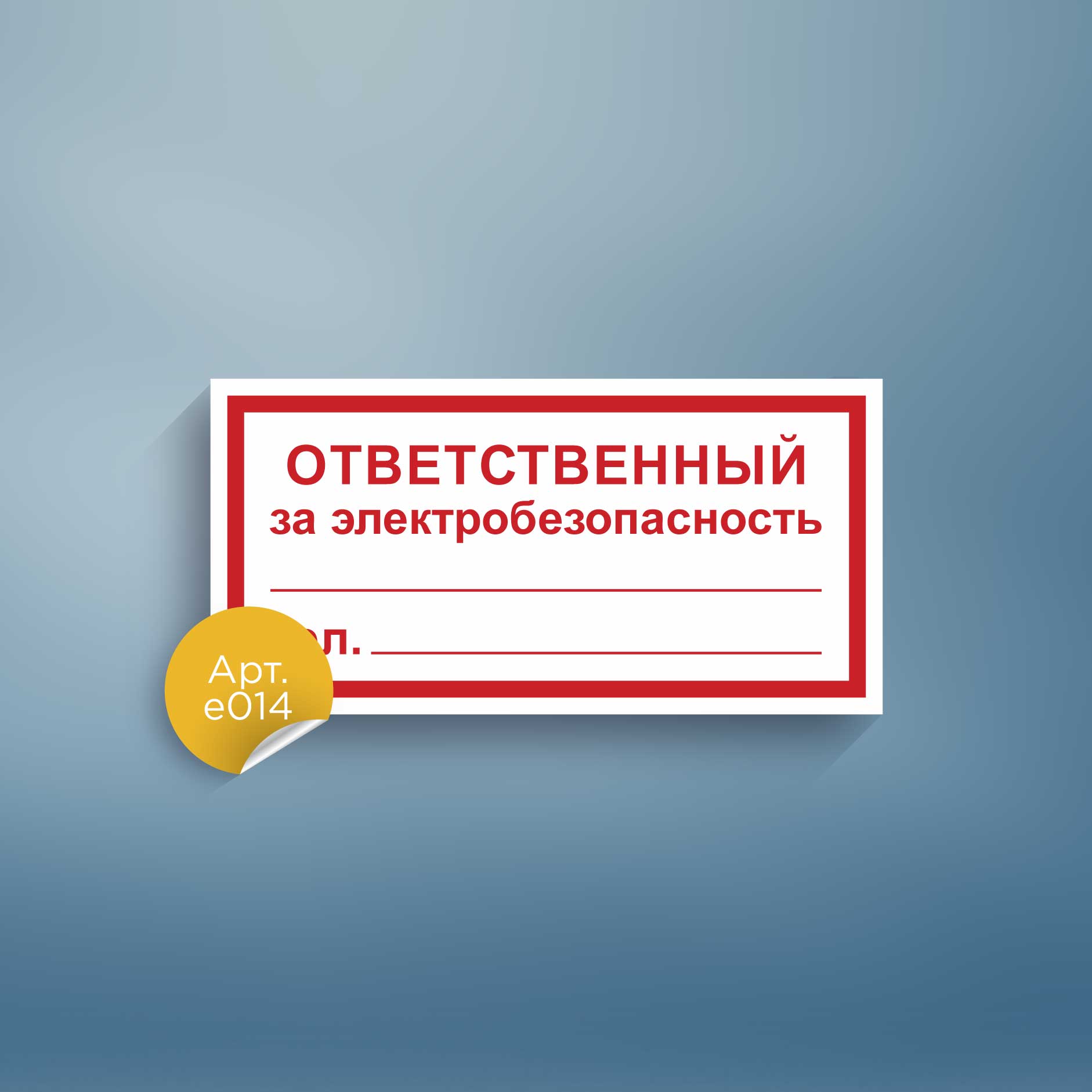 Знак Ответственный за электробезопасность указывает на лицо, ответственное за электробезопасность в данном здании или помещении. В нижней части знака указывается контактный телефон ответственного за электробезопасность работника.
